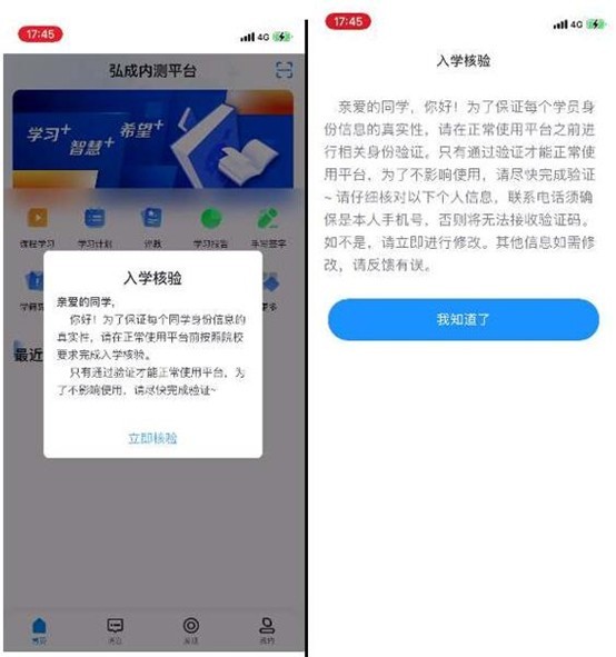1、登录后,依据页面提示,如下图,点击【立即核验】和【我知道了】进入下一步。